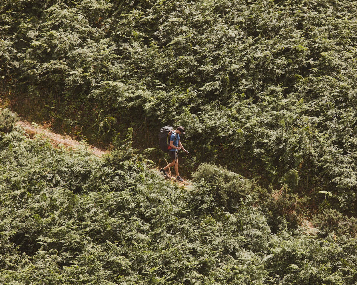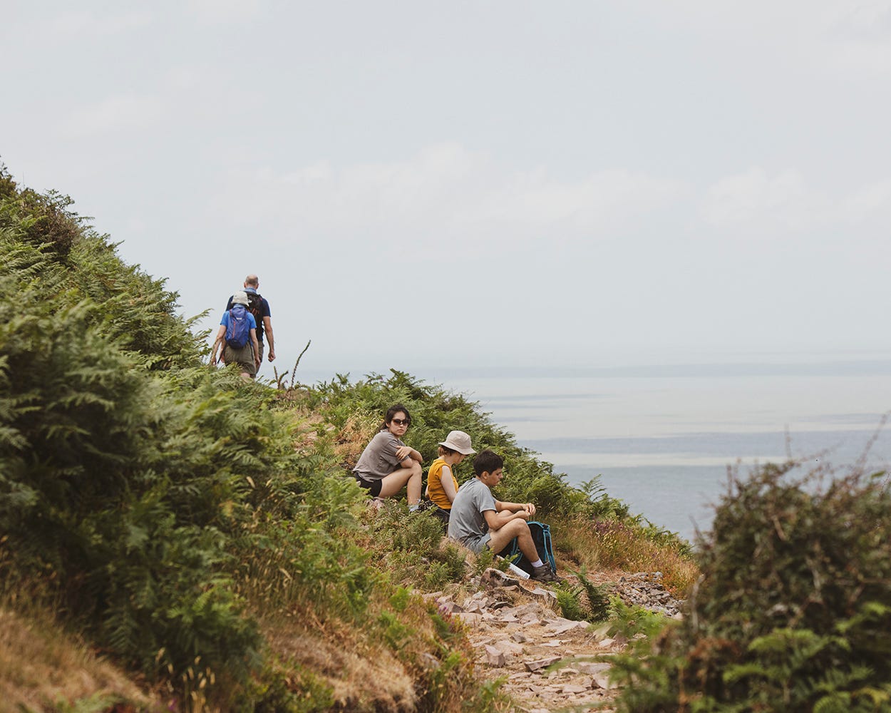 On the path halfway between Minehead and Porlock Weir sits a philosopher. His backpack between the fences, his gaze fixed on the sea, a scarf on his head to protect him from the sun. A year ago, Ian Mulholland (54) was still spending entire days behind his computer, putting the finishing touches to his thesis on Wittgenstein’s Tractatus Logico-Philosophicus. It was his daughter who thought he should take a break from his books. So he traded his laptop for a tent and a pair of hiking boots. For the next two months, Mulholland would be walking the South West Coast Path, the day we met being his first day.