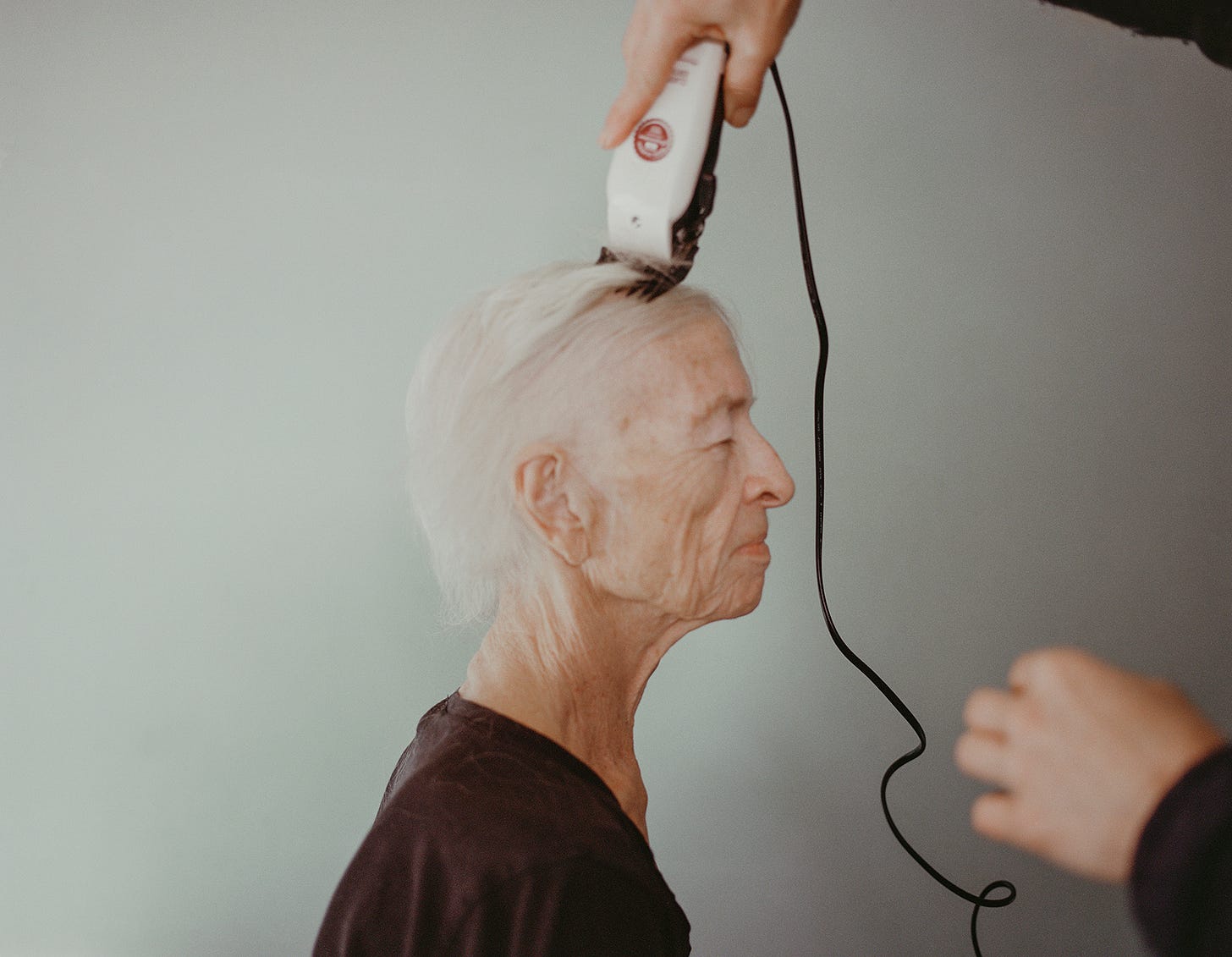 In this image mum decided that Gem ( my partner ) could shave her remaining hair off, it had been falling out due to the chemotherapy. We were nervous, we were crying, and we were laughing as we shared and recorded this significant moment.
